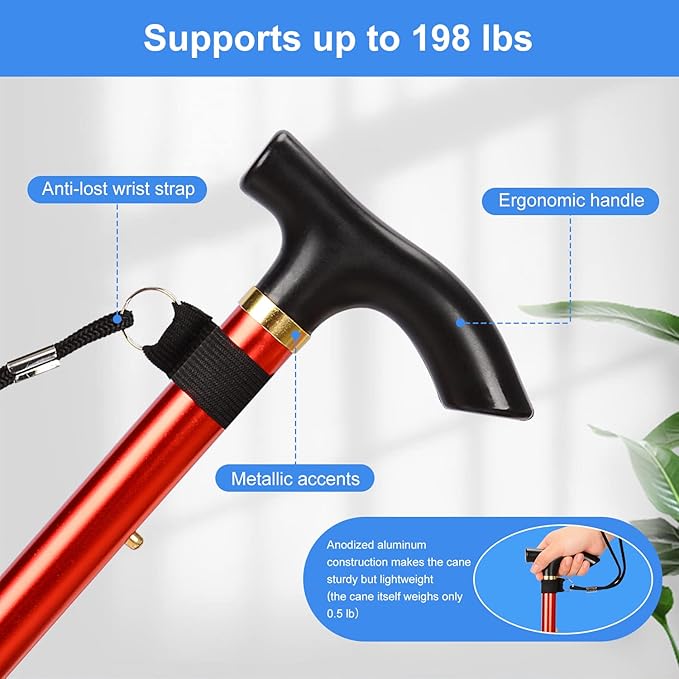 supregear Folding Cane, 5-Level Adjustable Height Walking Stick Lightweight Collapsible Portable Travel Cane with Wrist Strap and T Handle for Elderly Disabled Men Women