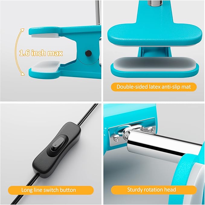 - 【Space-Saving】The clip design allows you to easily attach the lamp to any desk, and the double-layer latex material without easily breaking or deteriorating ensures durability and protects your desktop or board.