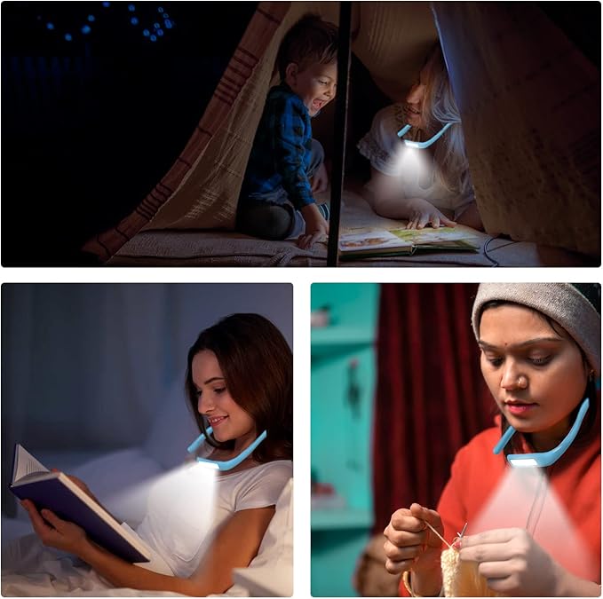- 【WIDE RANGE OF USES】This book reading light is made of high-quality silica gel, which is soft and skin-friendly, and it will not stimulate the skin when hung on the neck. It is very suitable for indoor and outdoor use in bedrooms, dormitories, schools, etc. It can be used for reading, repairing, jogging at night, knitting, etc.