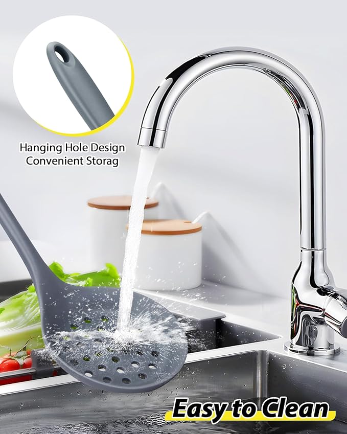 - Seamless One Piece Design:Seamless one piece design compact and sturdy, and Non-Stick, Soft Handle for better grip, Noiseless & Harmless, Perfect for baking, cooking, mixing, serving, draining, turning, stirring