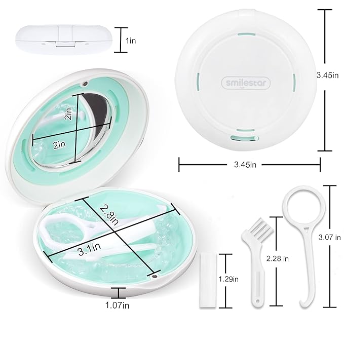 - USER-FRIENDLY DESIGN - Built-in mirror helps you easily put on and take off the retainer and check if food is stuck in your teeth. The food-grade silicone pad on the inside prevents the retainer from moving, protecting your holder and reducing rattling noise in pockets and purses. Package included: 1×white retainer case, 1×blue retainer case, 1×retainer remover tool, 1× retainer chewie, 1× retainer brush.