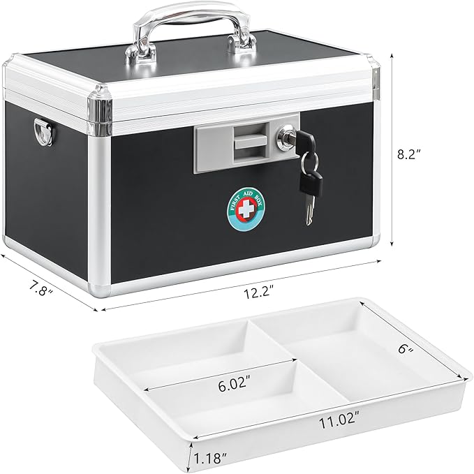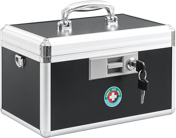 KYODOLED Medication Lock Box with Key, Medicine Lock Box for Safe Medication Storage, First Aid Key Safe Box with Lock for Home, Outdoor Use, 12.2'' x 7.8'' x 8.2'' Black
