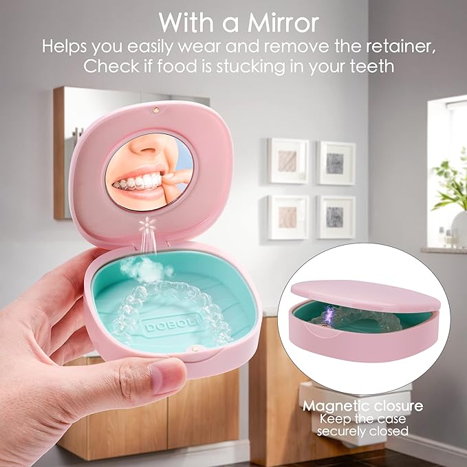 - Vent holes and mirror design: The Doboli retainer case features vent holes to keep your retainer dry. Additionally, it comes with an integrated mirror, allowing you to check your oral hygiene and retainer fit anytime, anywhere.