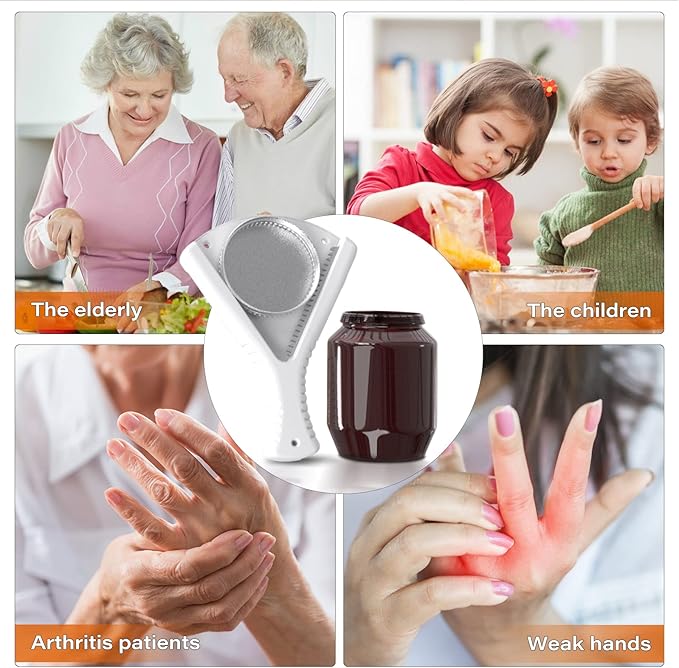 - 【More Effortless】 Place V of opener over top of jar. Slide this cap opener so that the jar lid fits snugly into the V shape, the steel teeth must touch the lid, twist lid opener counterclockwise to open. Ideal jar opener for weak hands, suitable for children, the elderly, arthritis patients, carpal tunnel patients, people who work in the kitchen, and someone with restricted hand movement.