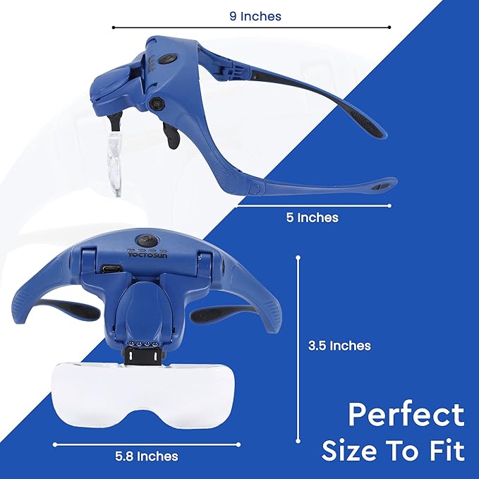 - LED HEAD MAGNIFIER WITH A STORAGE CASE:Headset Magnifier comes with 5 magnification lenses 1x, 1.5x, 2x, 2.5x, 3.5x, rechargeable LED Light and an interchangeable elastic head strap. Scratch-resistant acrylic lenses reduce weight. Storage Case keeps your magnifying glasses Safe and Clean,great for travelling,perfect gift for families and friends.