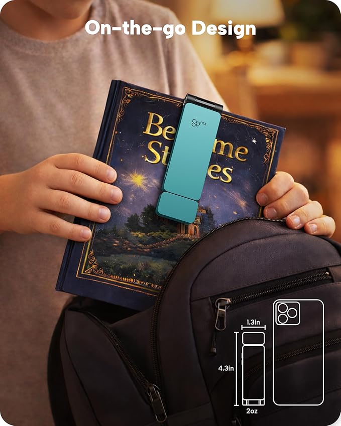 86lux Book Light, Rechargeable Clip-On LED Reading Light for Bed & Night Use - 3 Color Temperatures with Stepless Dimming, Ultralight Bookmark Design for Kids, Book Lovers, Cyan