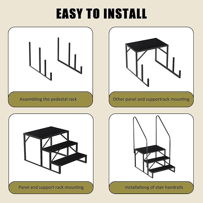 - 【Mobile Home Stairs Wide Use】: Our safety camper steps can be used both indoors and outdoors. Our swimming pool ladder above ground provides extra height for stage, storage room, truck, travel, outside, exercise and therapy. And the portable outdoor stairs can also be used as a decorative shelf, tall bed step, inflatable hot tub accessories, medical step stool with rails in house and RV entry. Wherever requires climbing, mobile home steps is an ideal choice!