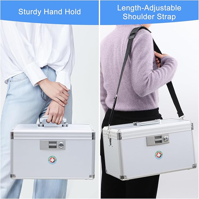 - Convenient Carrying Options: The box is designed for easy transportation. It can be effortlessly carried by hand using the comfortable handle, or alternatively, the included shoulder strap allows for convenient single-shoulder carrying, providing flexibility and convenience for medical professionals on the go.