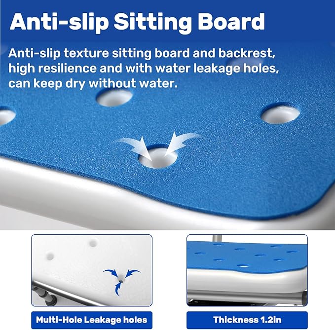 - Height Adjustable: The rotating shower chair with back can be adjusted to four height levels, ranging from 16" to 19", to meet various needs.