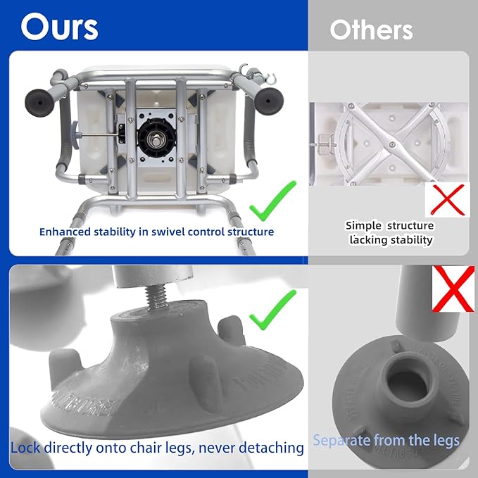 - 360° Swivel & Stopper : This heavy duty swivel shower chair rotates 360 degrees in 90-degree increments, with a locking pin to keep it still. Easy transfer in and out of a tub.