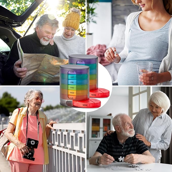 - BRIGHT EASY TO SEE COLORS: The outer case is designed transparent and each tray has unique bright color for the user to easily distinguish days of the week.