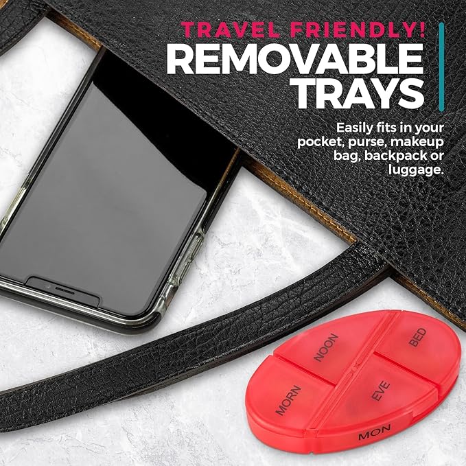 - CONVENIENT AND DURABLE CONSTRUCTION: Our pill organizer box is made of rugged and highly durable plastic, guaranteed to last for a lifetime. With removable tray and lids, it's extremely easy to load and unload your medicines.