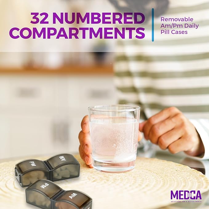- THERES NO EASIER WAY TO REMEMBER TO TAKE YOUR PILLS: Because our MEDca 31 day monthly pill organizer features 32 numbered bright and colorful translucent compartments you will be able to check to see if you have taken your pills for the day and that way you won't have to keep multiple pill boxes. This pill organizer 2 times a day saves you time and the best option in monthly pill organizers for travel.