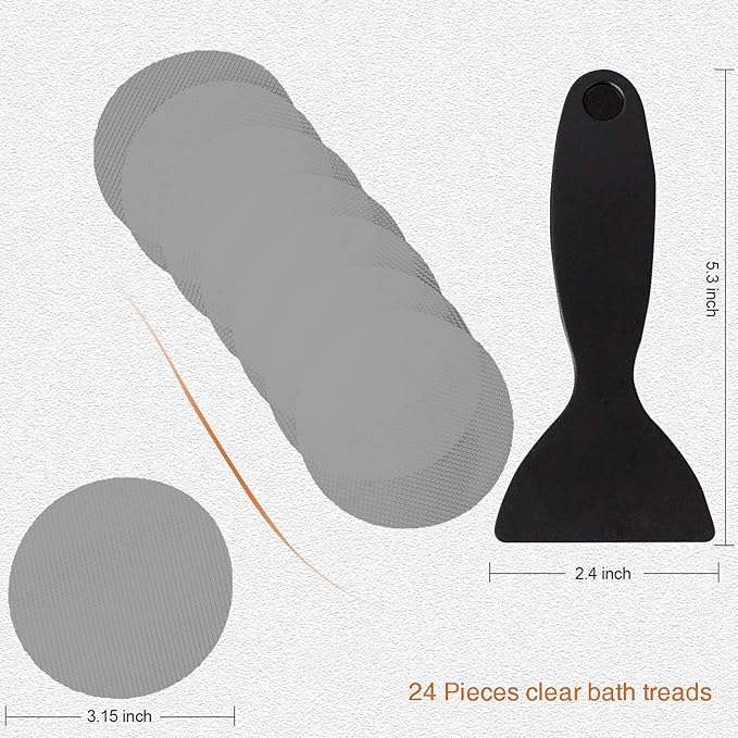 - The package comprises 36 pieces (diameter about 8.0cm or 3.15-inch) of clear stickers alongside 1 high-quality silicone scraper. Ideally, the 36 stickers should occupy the whole surface thereby reducing the risk of accidental slips. On top of that, you can even use these stickers on the stairs to make them much more secure.