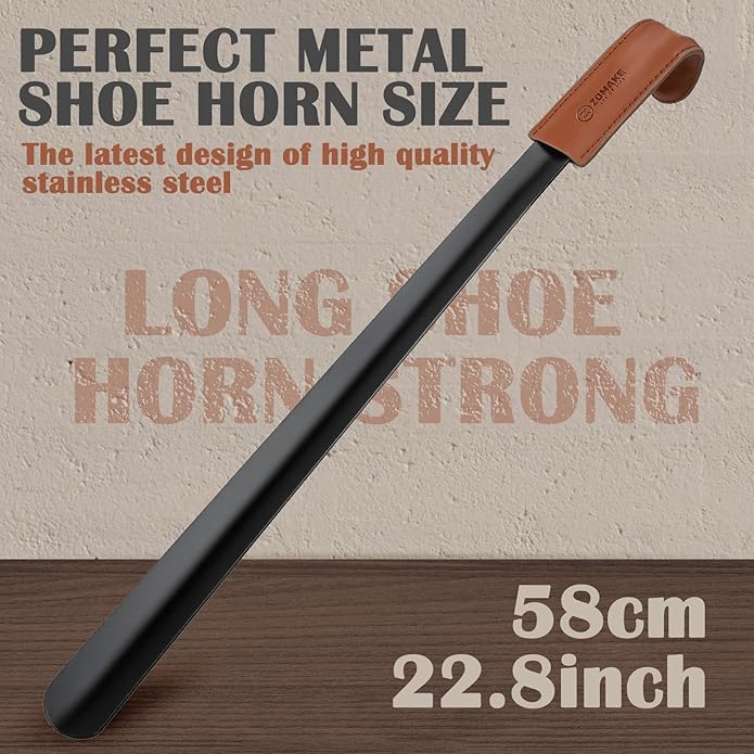ZOMAKE Long Shoe Horn for Seniors Men,Metal Shoehorn Long handle for Boots, 22.8'' Shoe Spoon Helper