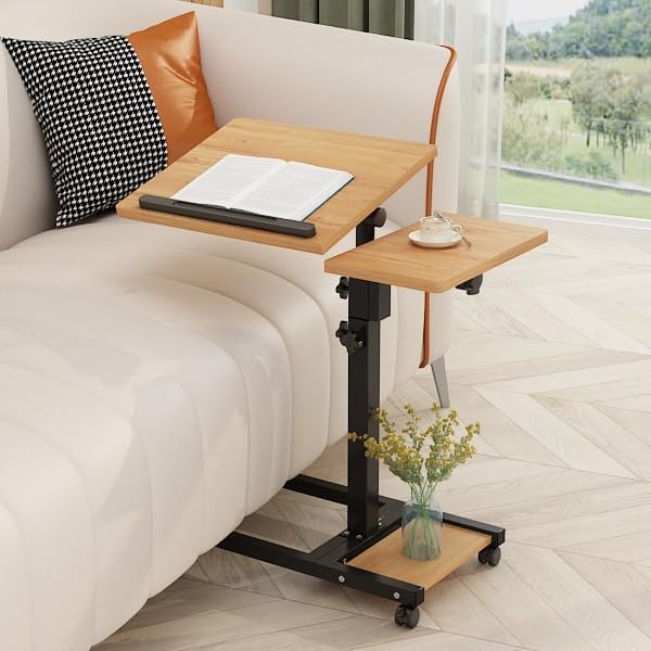 Mobile Height Adjustable Laptop Desk with Mouse Pad, Portable Laptop Desk Rolling Tiltable Table with Small Side Table for Couch,Rolling Computer Stand