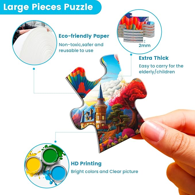 - π[Durable&Friendly Design]:Made of eco-friendly paper, our puzzle are easy to clean and can be used multiple times.Very durable! πΈ0.1 in-extra thickness design makes it very friendly for seniors with flexibility or mobility challenges.