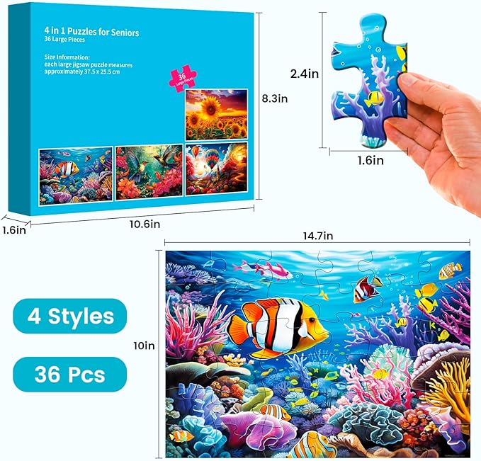 - π[What You Will Get]:You will receive 4 sets of Alzheimer's products, each set has 36 pieces of puzzles.These large piece puzzles are specially designed for seniors, including those with dementia and Alzheimer's, aiming to infuse joy into their daily lives and delay cognitive decline.