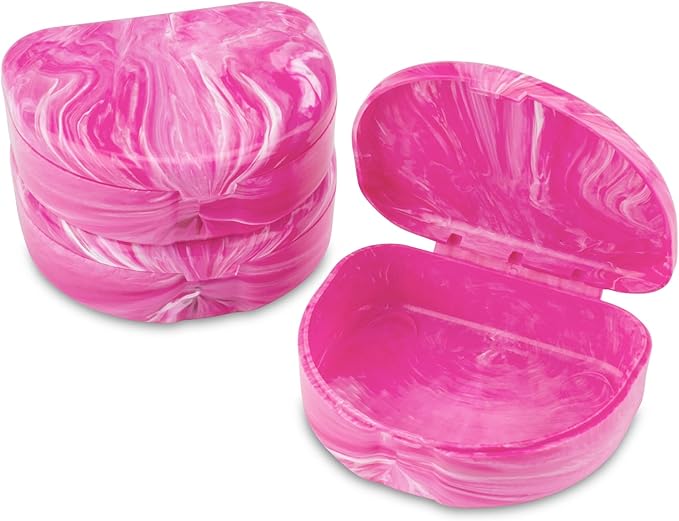 Practicon Marble Retainer Cases, Orthodontic Aligner Case, Mouth Guard Holder (3 Pack) (Pink)
