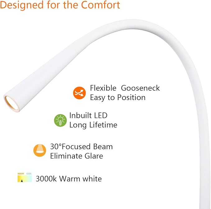 - LED 3W warm white 3000K, 30degree narrow beam angle, don't bother your partner when reading.