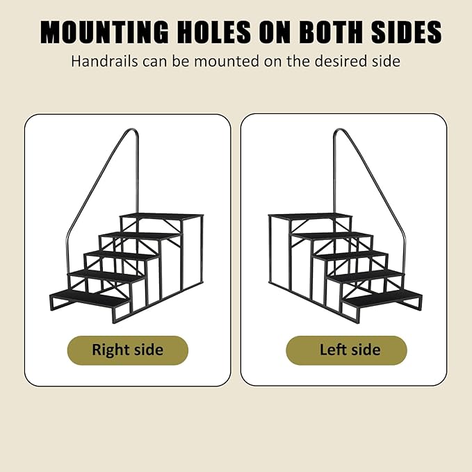 - 🔵 【Handrails for Outdoor Steps】: Our trailer ladder has mounting holes on both sides, so you can install the handrail on either side. Whether you're getting in and out of your motorhome or using our hot tub stairs for other tasks, railing can provide you with extra security
