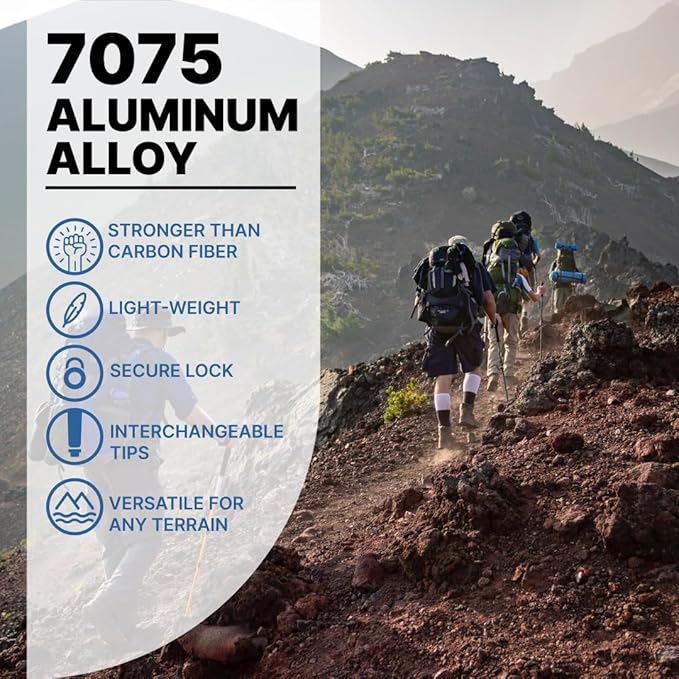 - 【High-Quality Materials】Crafted from aircraft-grade 7075 aluminum alloy, these poles are exceptionally lightweight at just 10.3 oz each, yet incredibly sturdy, durable, and resistant to extreme temperatures, making them suitable for challenging terrains and heavy loads.