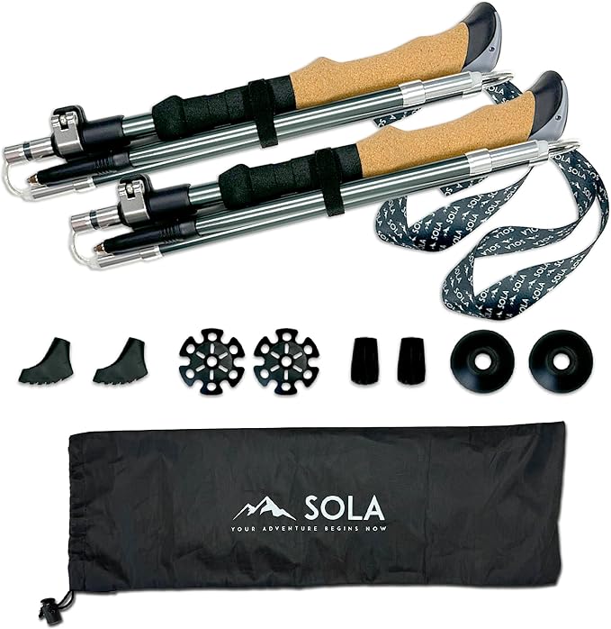 SOLA Trekking Poles Lightweight Collapsible Hiking Poles - 7075 Aluminum Alloy with Anti-Sweat Cork Grips Great for Nordic Walking, Hiking and Camping for Men Women Seniors - 2pcs per Set