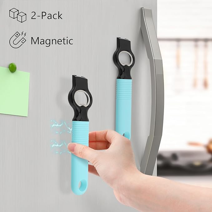 2-Pack Magnetic Beer Bottle Opener & Soda Can Opener, 2-in-1 Bottle Opener and Can Tab Opener Tool for Bartender, Long Nails, Arthritis, Seniors, Silicone Handle with Build in Magnet - Aqua