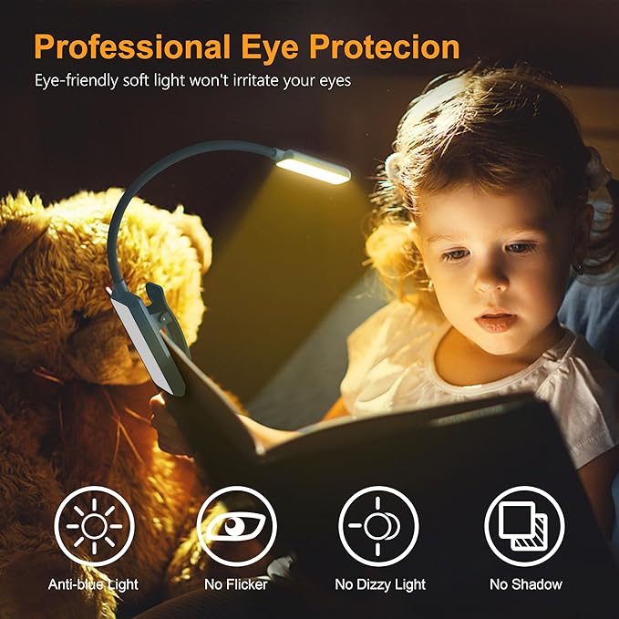 - Eye Protecting Reading Light: No flicker, no shadow, no dizzy light. Provide a natural and soft light which won’t strain your eyes even after long hours of use. Enjoy your reading time without disturbing your partner or roommate