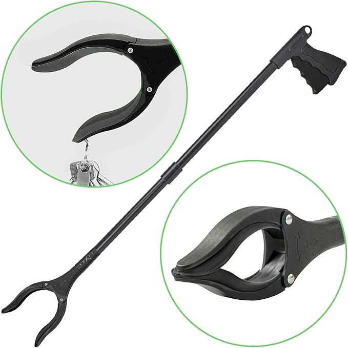 - PREMIUM AlUMINUM MATERIAL: Long-lasting construction made out of premium Aluminum ensures toplevel durability for daily use. It’s compact and foldable so you can easily store it anywhere when not in use and lightweight so you easily lift it and take it anywhere. Elderly assistance products reacher grabber pickup tool. Garden claw grabber. Reaching assistant tool.