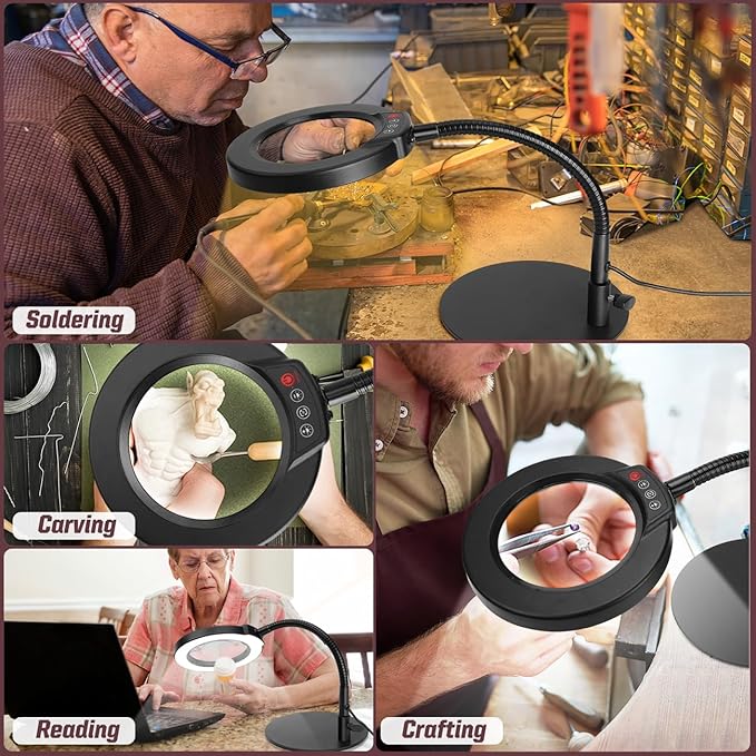 - Flexibility with Adjustable Goose-neck: The 360° rotatable, high-quality metal goose-neck offers unparalleled flexibility. Ideal for artists, architects, craftsmen, hobbyists, coin collectors, and sculptors, our magnifying desk lamp allows you to position the light and magnifier precisely for your close-up work. Rest assured, our dedicated support team is ready to address any concerns or dissatisfaction with your purchase.