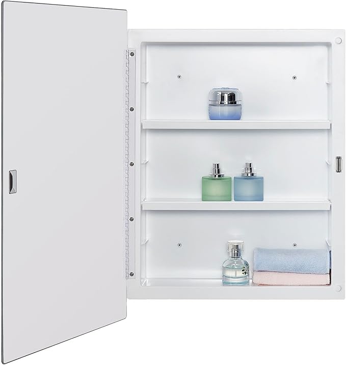 Plastic Bathroom Medicine Mirror Cabinet 16 x 22 inch, Surface and Recessed Mount, Beveled Edge Mirror