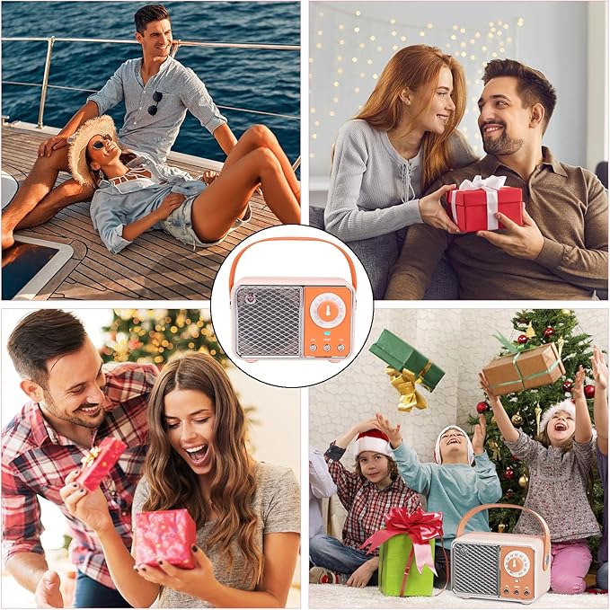 Dosmix Retro Bluetooth Speaker, Vintage Decor, Wireless Bluetooth Speakers, Cute Old Fashion Style for Kitchen Desk Bedroom Office Party Outdoor Kawaii Accessories (Orange)