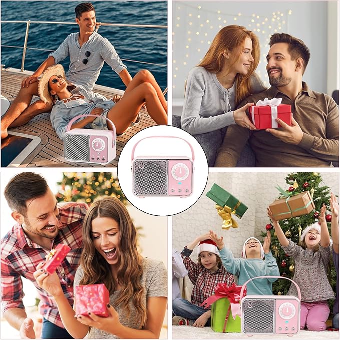 Dosmix Kawaii Room Decor, Retro Bluetooth Speaker,Wireless Bluetooth Speakers, Pink Cute Old Fashion Style for Kitchen Desk Bedroom Office Party Outdoor Vintage Accessories (Tender Pink)