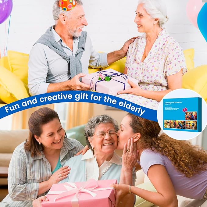 - [4 Pack 36 Pieces Puzzles ]This puzzles for seniors features vibrant colors and charming images, making it very suitable for the elderly, especially those with blurred vision and dementia.This jigsaw puzzles box contains 4 pack 36 pieces puzzles(size:14.7*10IN), 4 full-size colored posters, and 4 plastic bags for storing puzzles!