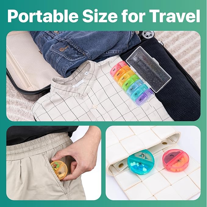 - Portable Size: You can take one of the pill cases for daily use, and can easily fit into your pockets, bags, or suitcases. It is an ideal travel companion!