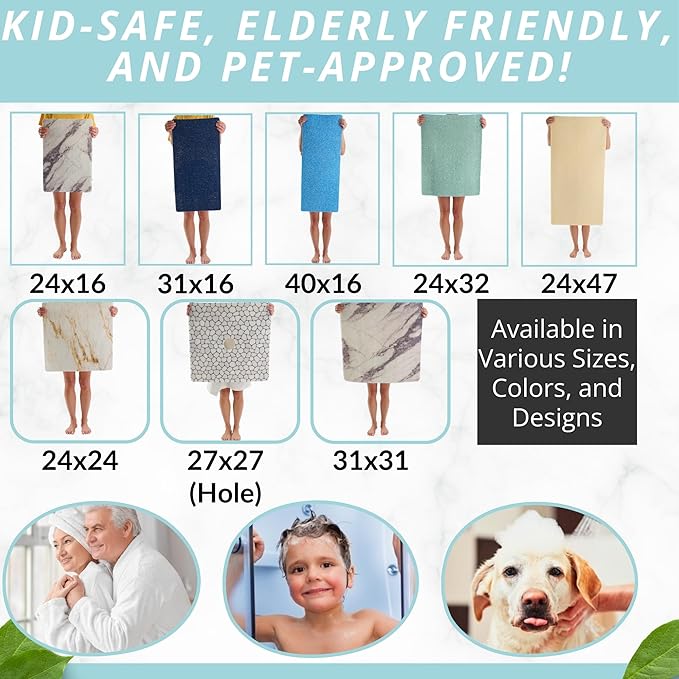 - Perfect for Every Bathroom and Family Member: Use inside or outsides bathrooms, baths, bathtubs, spas, showers, and shower stalls, this mat is ideal for everyone, the elderly, seniors, kids, or anyone needing extra safety in the bathroom