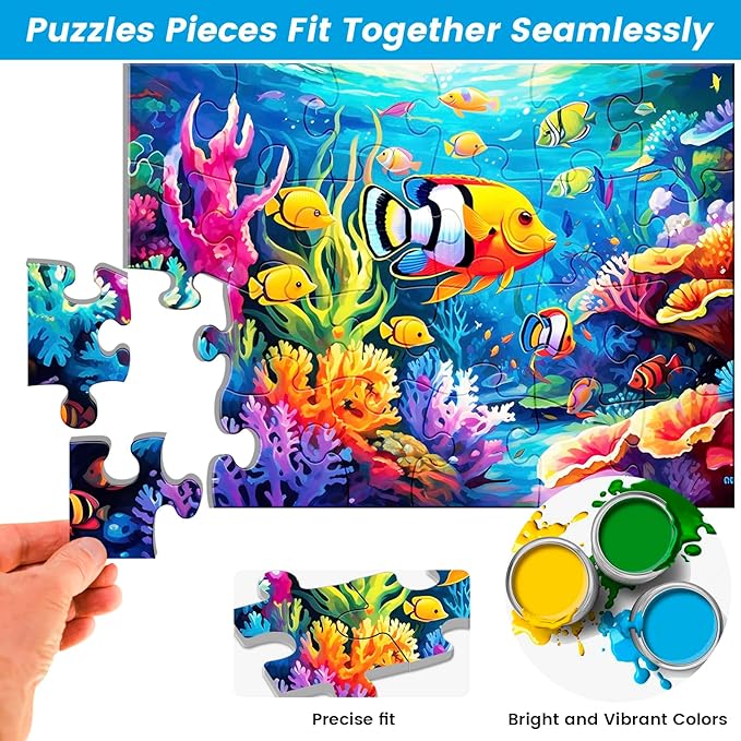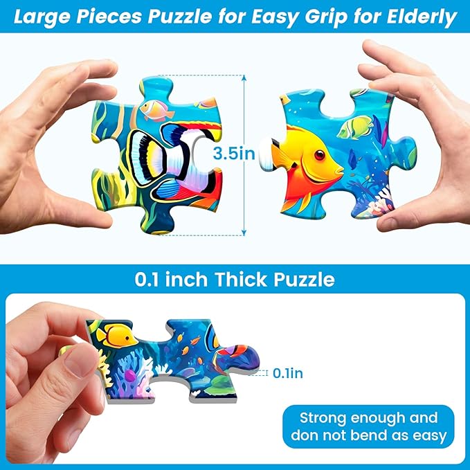 - [Large Piece Puzzles] The jigsaw puzzles pieces are large, measuring 3.5 inches in length, ensuring easy handling for elderly individuals. The large piece puzzles is exquisitely crafted with smooth edges that can be tightly pieced together, making the puzzle process smoother!