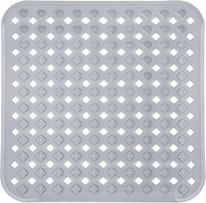 Yimobra Square Shower Mat Non Slip, Super Strong Suction Cups, 21"x21" Bath Tub Mat with Drain Holes, Machine Washable Fast Draining Bath Mats, Bathroom Essentials,Clear Gray