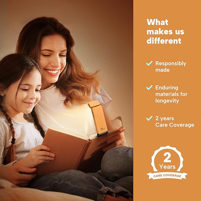 86lux Book Light, Rechargeable Reading Lights for Books in Bed, Ultralight Clip-on LED Bookmark Lamp with 3 Amber Colors & Stepless Dimming for Night Reading for Book Lovers, Kids, Papaya Orange