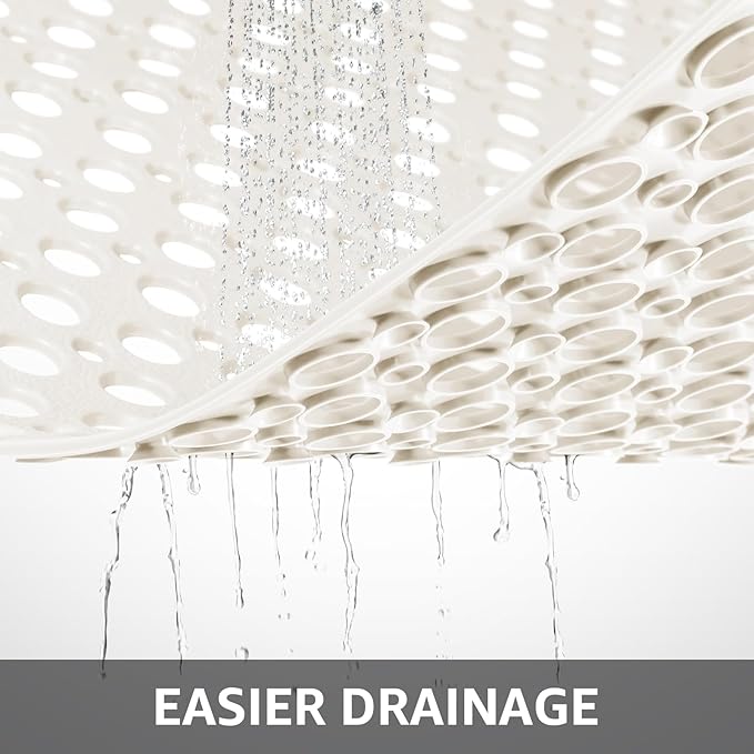 Yolife Extra Large Shower Mat 47x32 inch, Non Slip Shower Mat for Inside Shower with Drain Holes and Suction Cups for Bathroom, No Odor TPE Shower Floor Mat,White