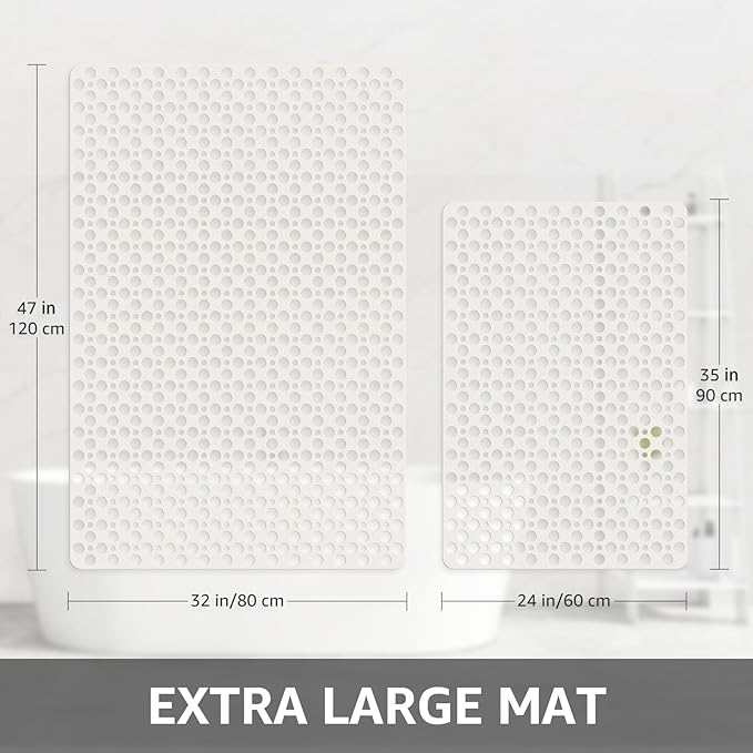 - Large Shower Mat: Measuring a generous size ๐๐ ๐ ๐ฑ ๐๐ ๐ inches, this shower mat non slip with textured surface covers a large area in your bathroom, providing added protection and reduces the risk of slipping. ๐๐๐๐๐๐: ๐๐ฅ๐๐๐ฌ๐ ๐๐จ๐ง๐๐ข๐ซ๐ฆ ๐ญ๐ก๐ ๐๐๐ญ๐ก๐ซ๐จ๐จ๐ฆ ๐๐ข๐ฆ๐๐ง๐ฌ๐ข๐จ๐ง๐ฌ ๐๐๐๐จ๐ซ๐ ๐ฉ๐ฎ๐ซ๐๐ก๐๐ฌ๐ข๐ง๐ ๐ญ๐ก๐ ๐ฑ๐ฅ ๐ฌ๐ก๐จ๐ฐ๐๐ซ ๐ฆ๐๐ญ