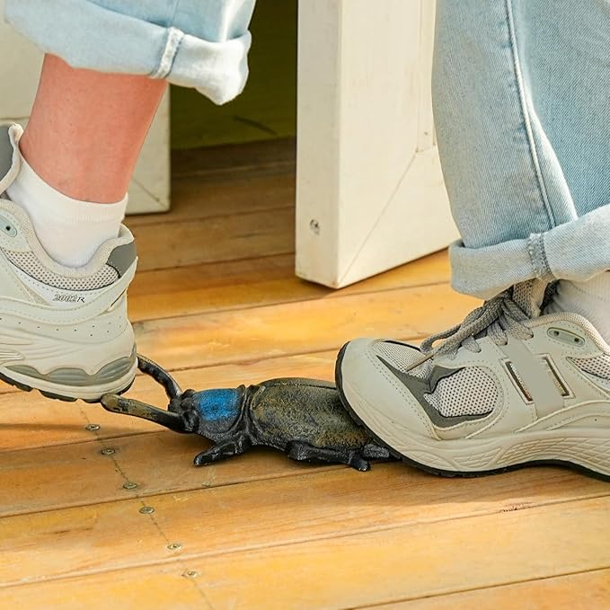 - Functional: This very cool and functional beetle removes shoes and boots simply and safely. Heavy cast iron doubles as handy door stop.