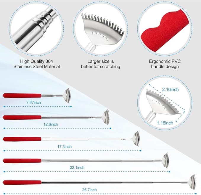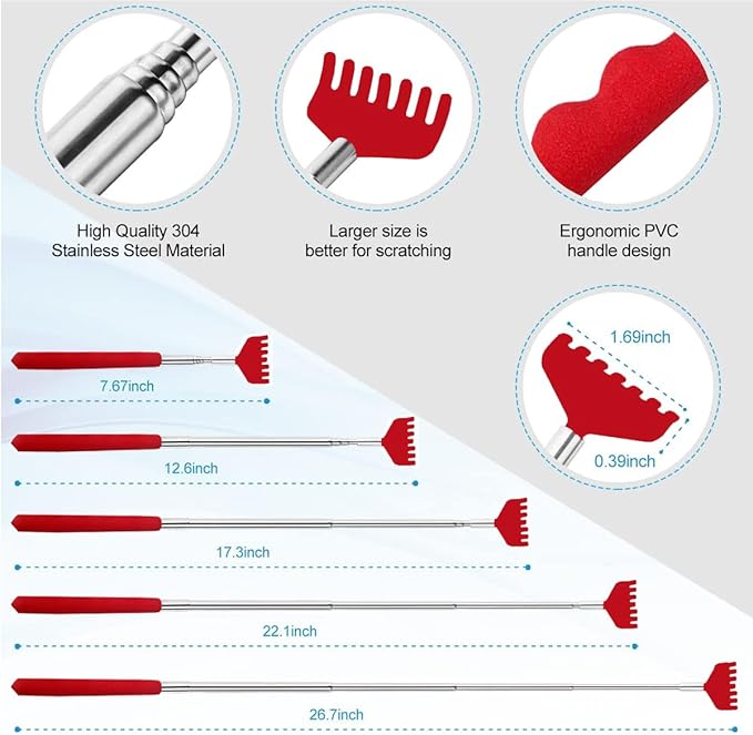 - More Uses - Almost no one reaches the back or anywhere else. Our retractable back scraper helps you reach hard-to-reach places. It can help you eliminate the pressure, anxiety, and boredom. It is a useful yet super fun gadget