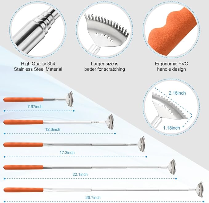 - More Uses - Almost no one reaches the back or anywhere else. Our retractable back scraper helps you reach hard-to-reach places. It can help you eliminate the pressure, anxiety, and boredom. It is a useful yet super fun gadget