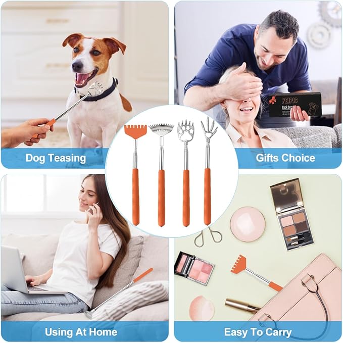 4 Pack Different Style Back Scratcher Metal Portable Telescoping Back scratchers, Extendable Back Massager Tool with Beautiful Box, Stocking Stuffers Gift for Men Women(Orange)