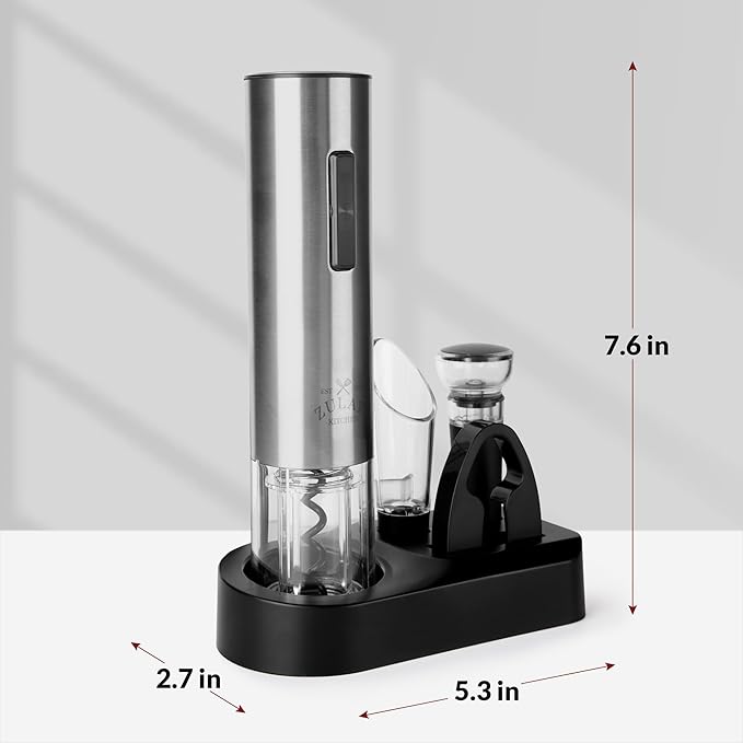 Zulay Kitchen Electric Wine Opener 4-Piece Gift Set with Charging Base - Foil Cutter, Aerator & Pourer, Vacuum Stoppers - Automatic Wine Bottle Corkscrew Opener For Smooth & Fast Uncorking