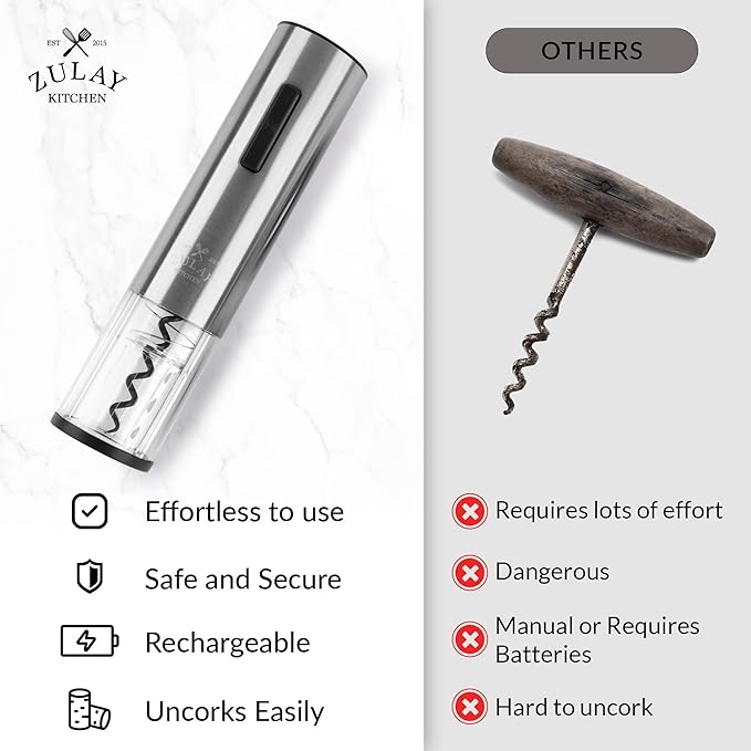 - A THOUGHTFUL & ELEGANT PRESENT: This electric corkscrew wine opener makes a truly memorable gift for weddings, anniversaries, housewarmings, or any special occasion. Its sleek, sophisticated design, combined with effortless functionality, ensures the rechargeable wine opener will be a hit with anyone who enjoys a glass of wine.