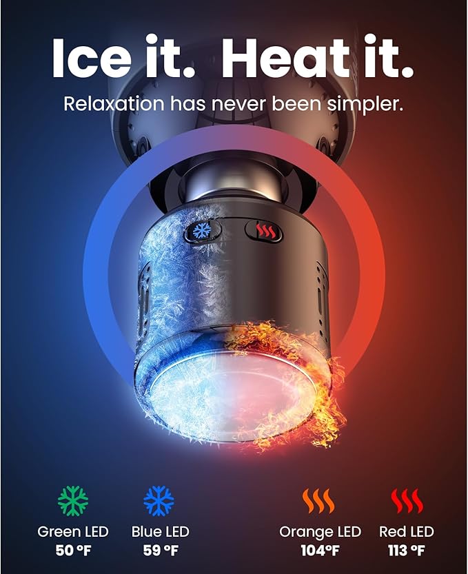 - Seamlessly Switch between Cold and Heat for Instant Relief - Experience the soothing power of both hot and cold therapy with this massage gun. At the press of a button, switch between invigorating cold and therapeutic heat to quickly target muscle aches and stiffness. The cold setting delivers a bracing chill that reduces inflammation and numbs pain for near-instant relief. The targeted heat helps relax tight, tense muscles, improving blood flow and flexibility