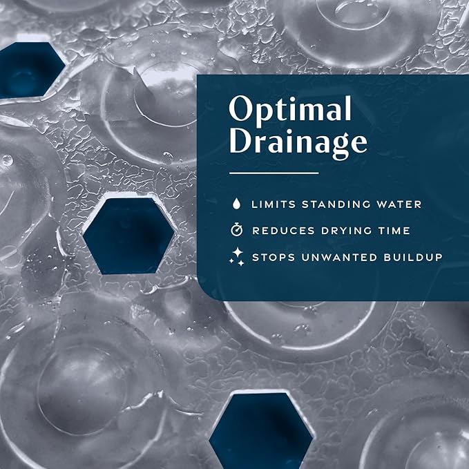 - Superior Drainage: Hundreds of large hexagonal drain holes prevent water from pooling, reducing the risk of standing water and allowing your mat to dry faster between uses and helping prevent buildup.
